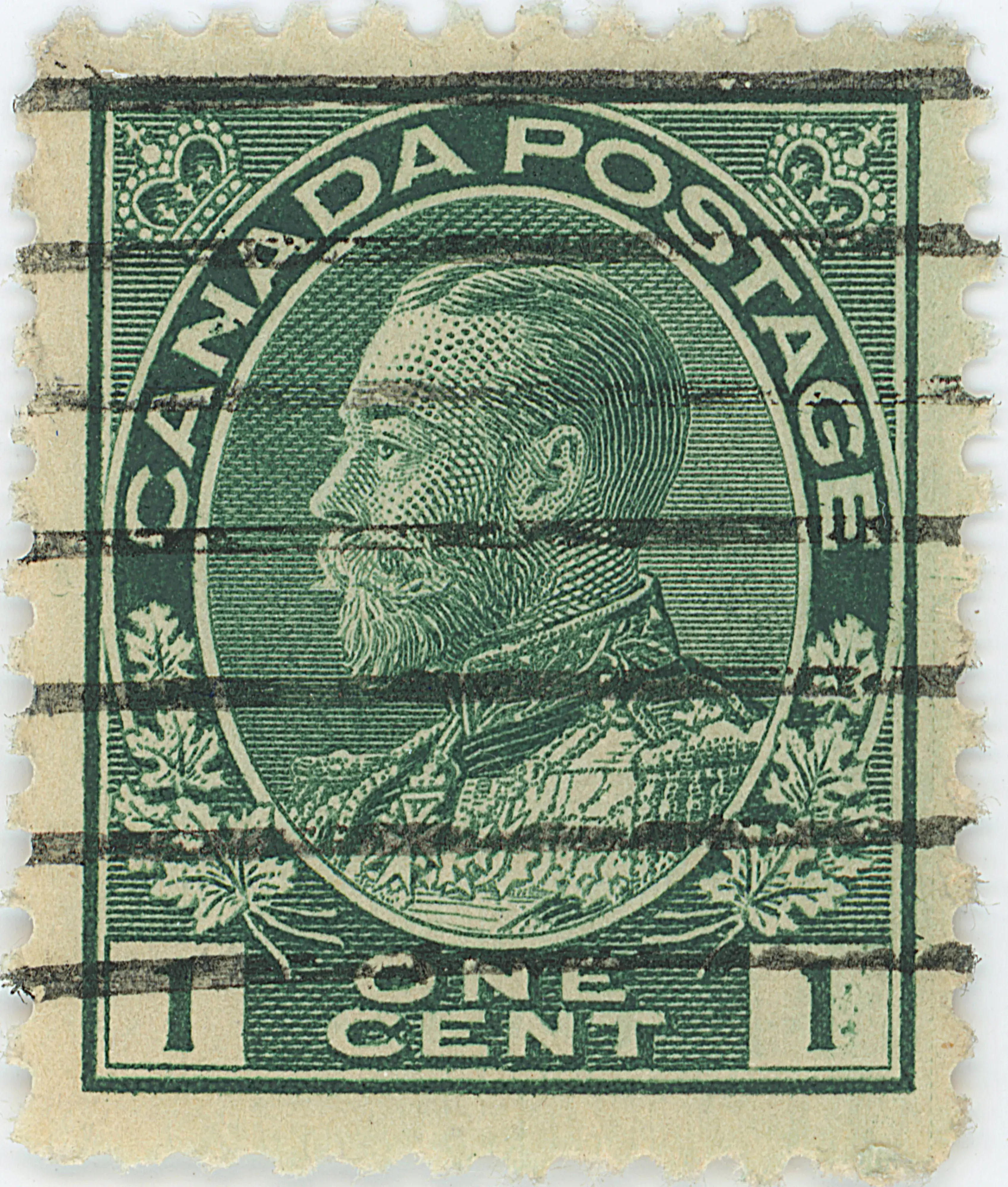 1¢ Green Pitted Right
