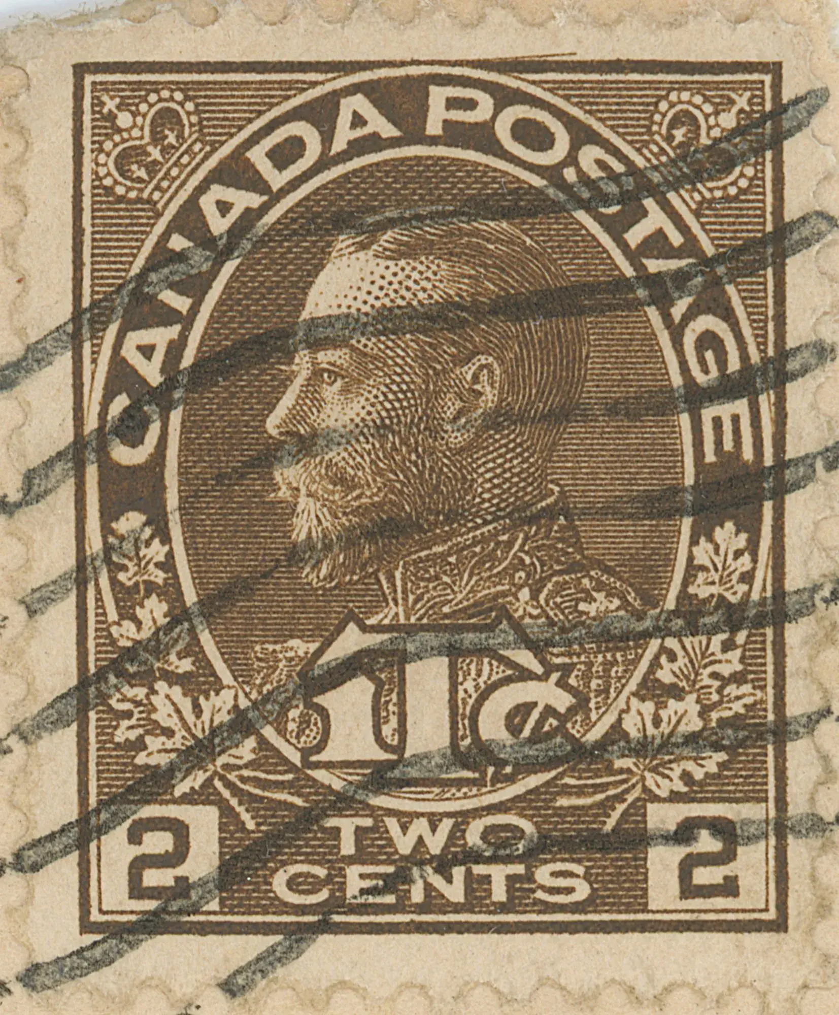 A flaw in the top margin above the 'PO' of Postage, likely the result of an 'engraver's slip'.