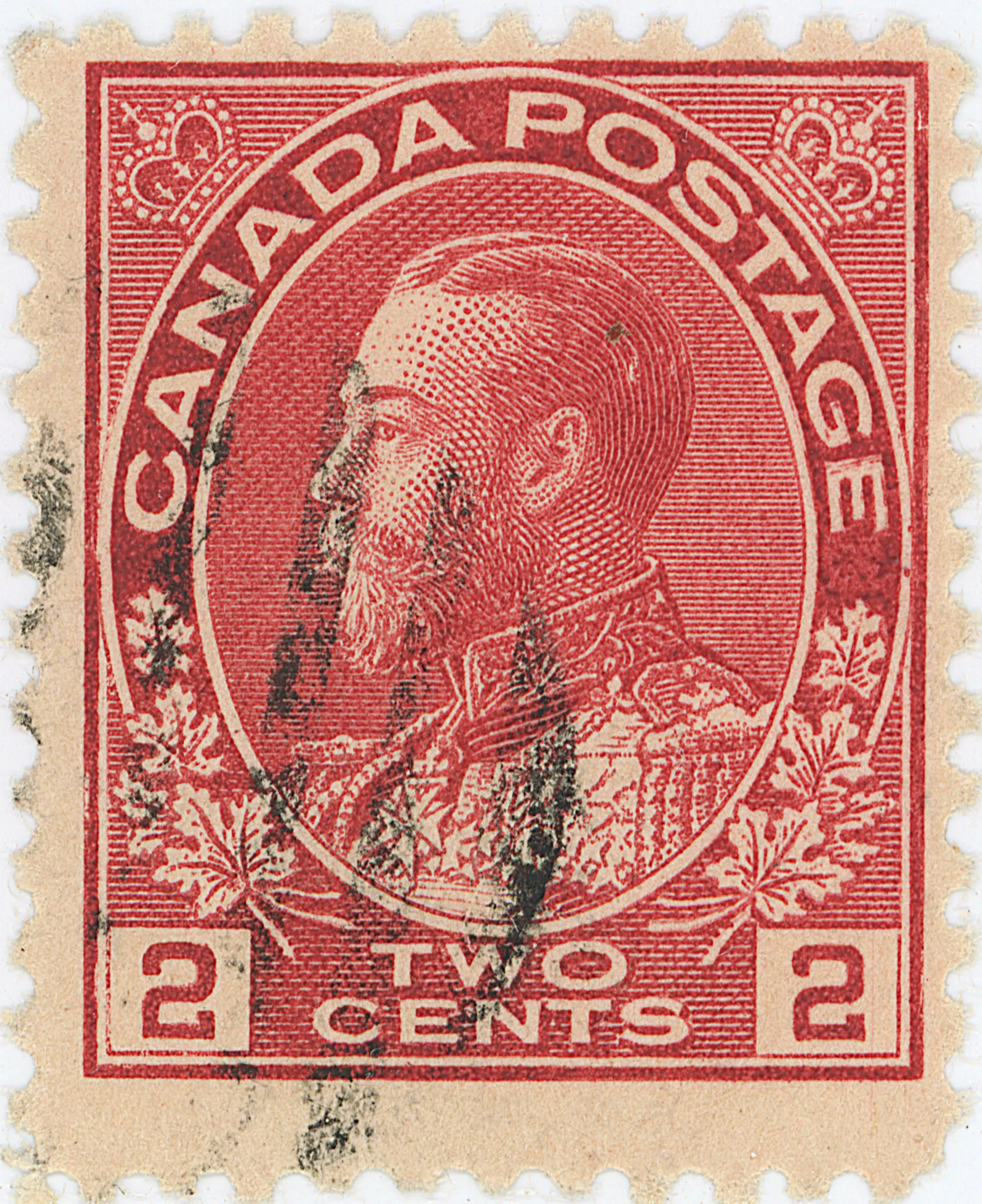 Doubling in and below the 'GE' of Postage with a large guide dot in the right centre outer oval.