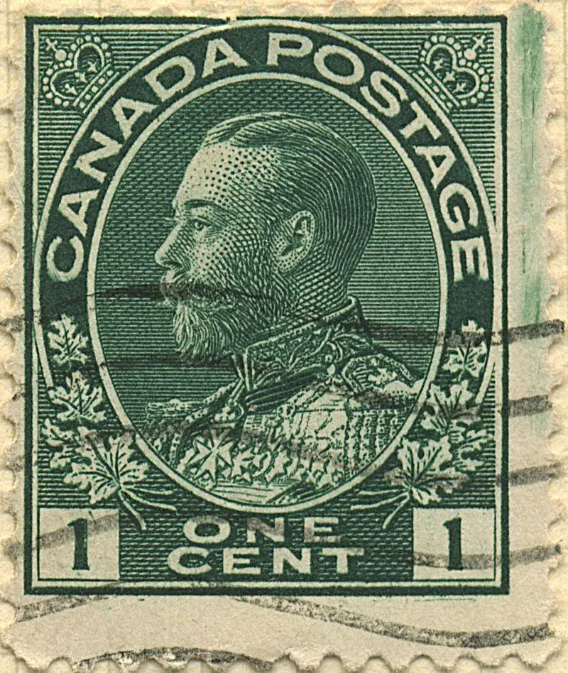 A vertical line from the left crown to the first A of Canada. Parts of the bottom frame doubled into the bottom margin and a mark above the '1' in the left numeral box.