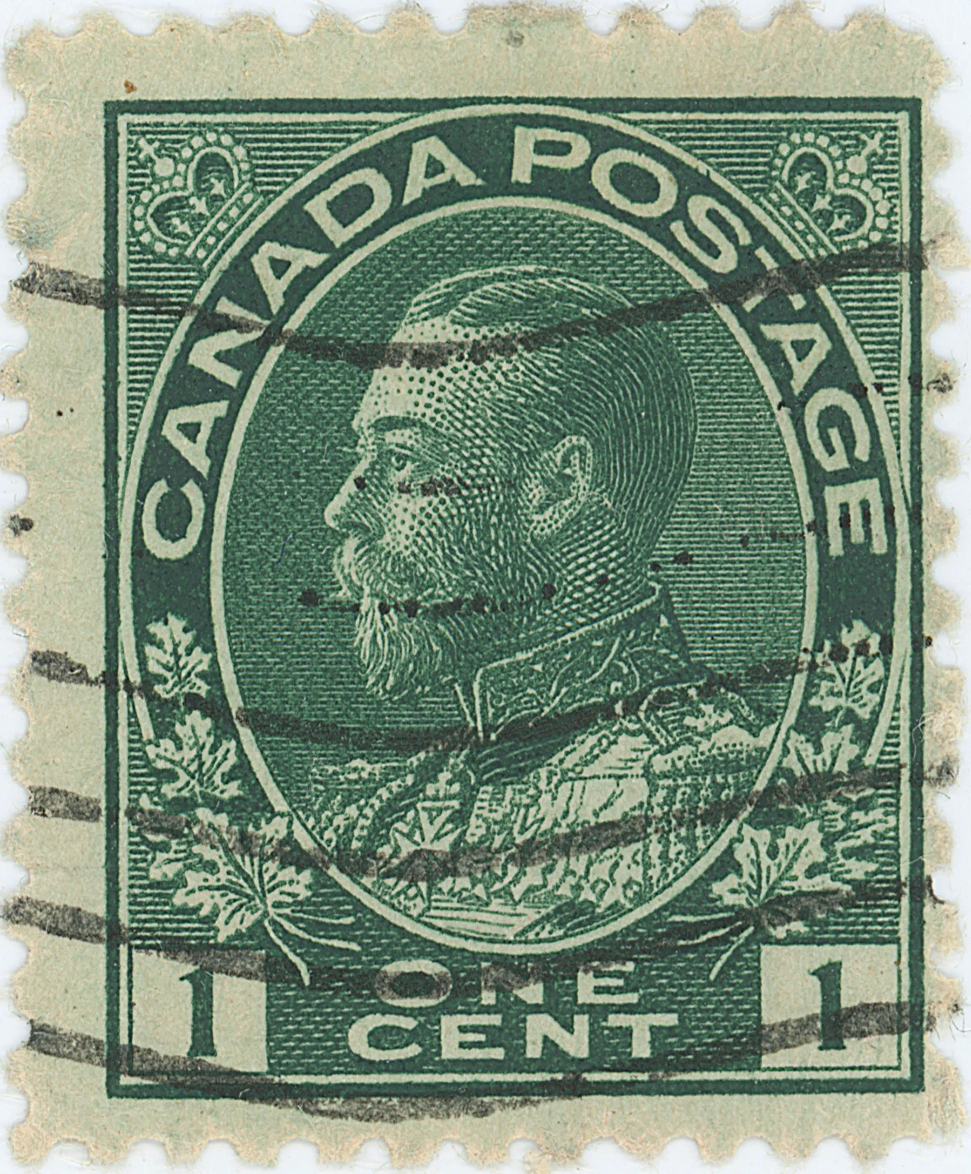 The marks in the top margin, above the 'O' of Postage are constant, but very faint in the second example.