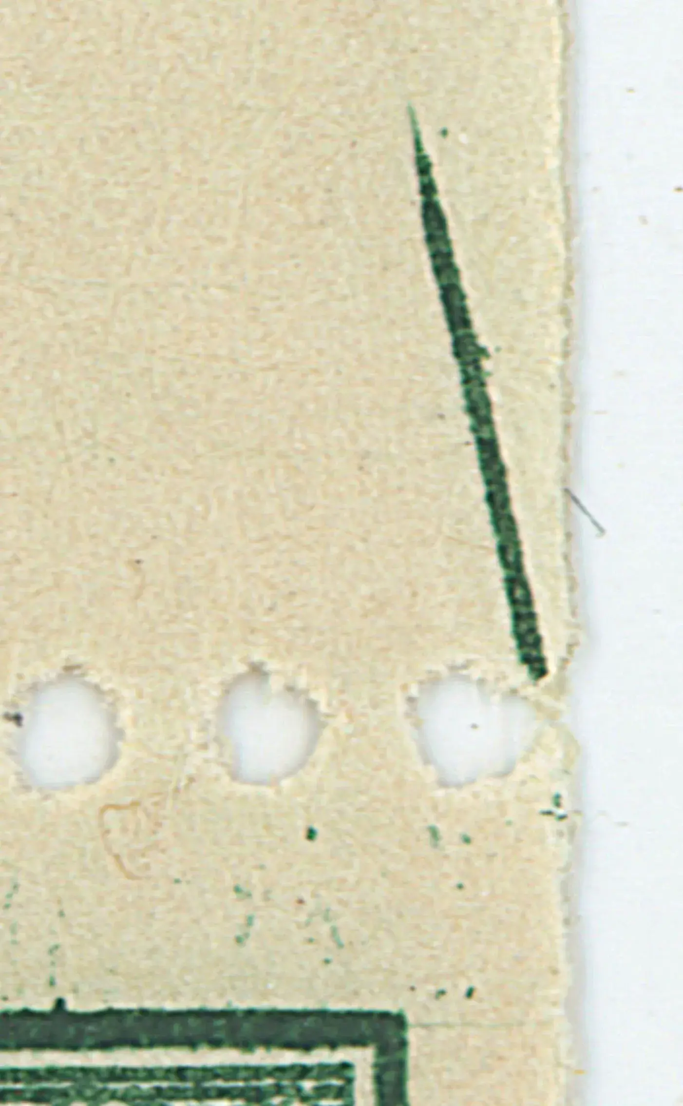 Hand drawn cutting guide arrow int eh upper right selvedge.