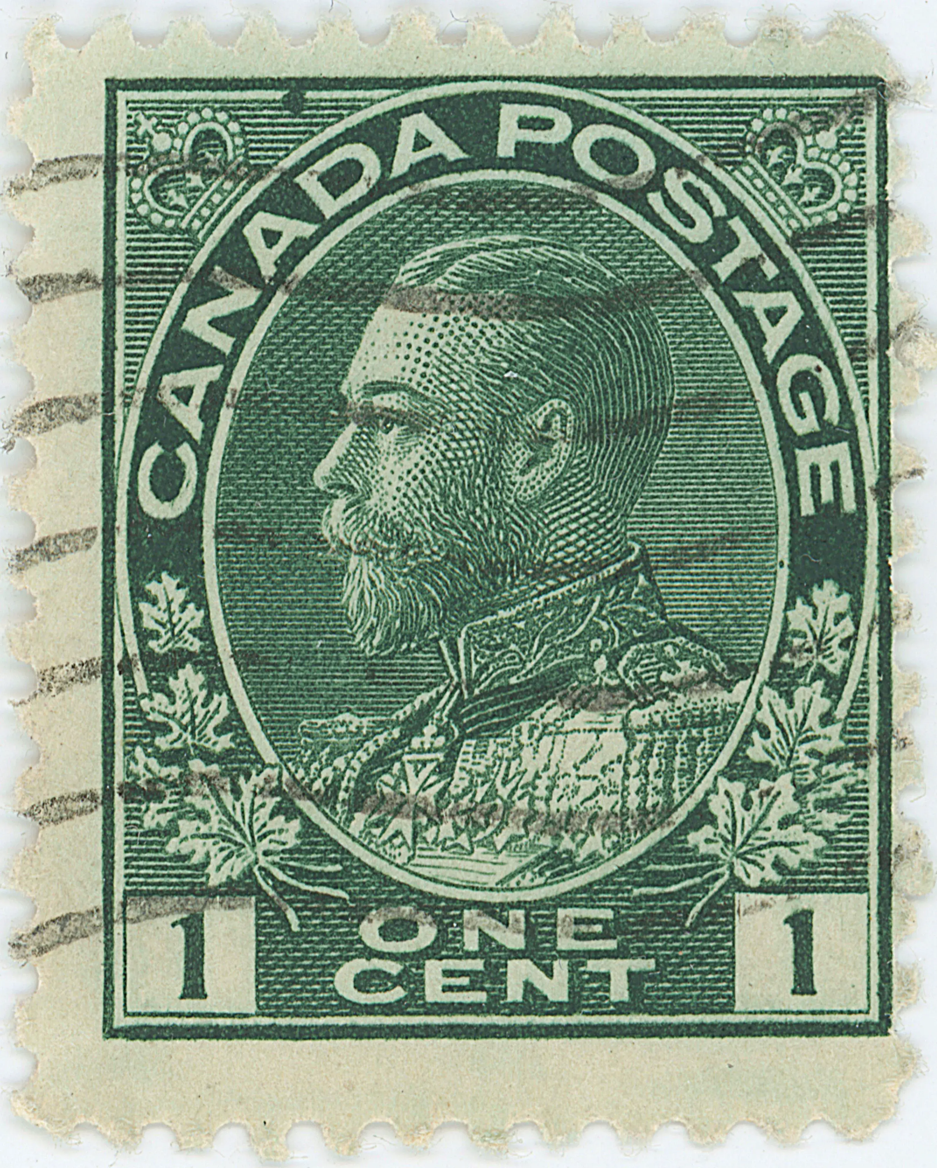 A large, round flaw touching the frame and the top two horizontal lines above the 'D' of Canada.