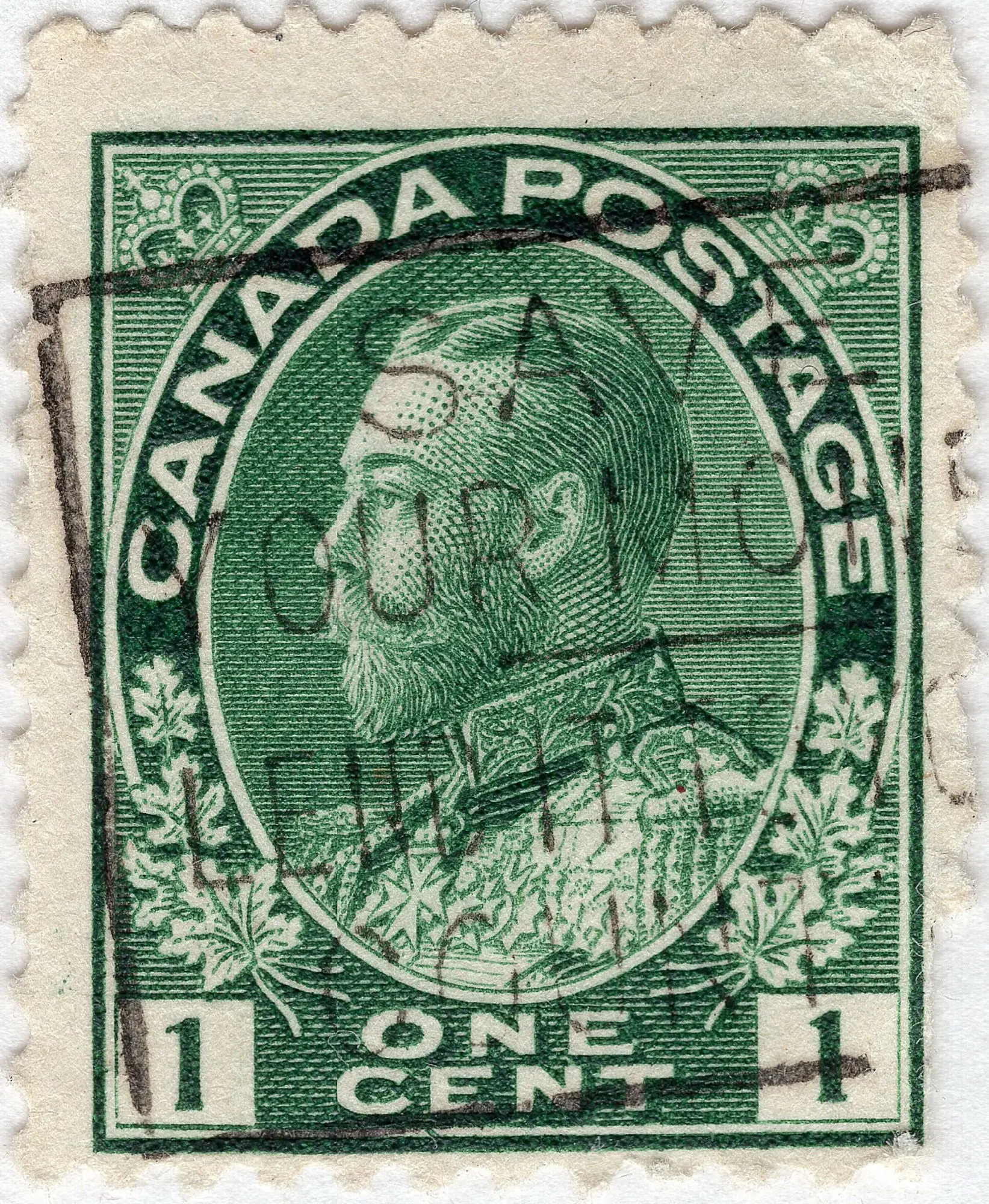 Two groups of two dashes each in the bottom portion of the 'G' of Postage.