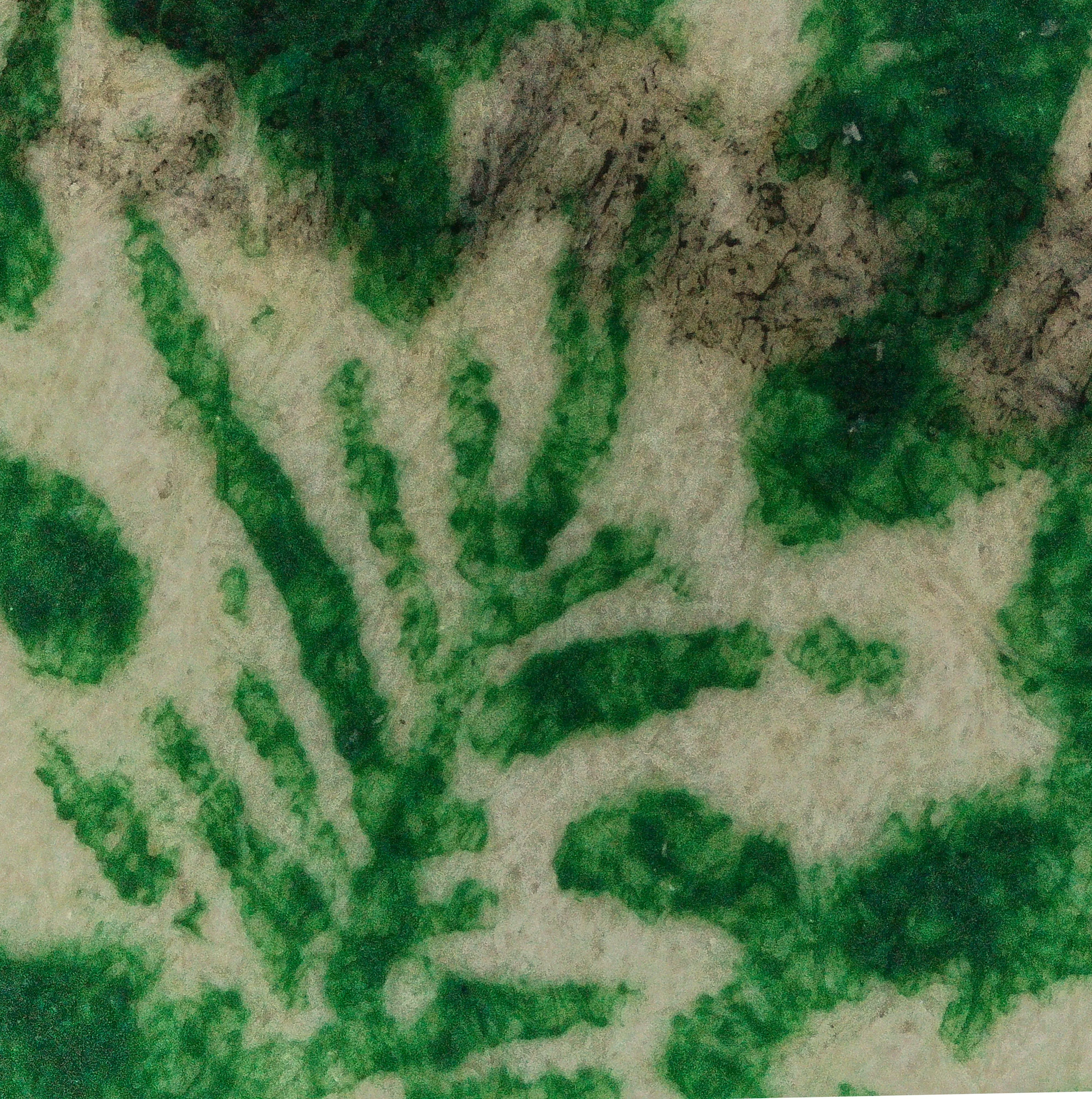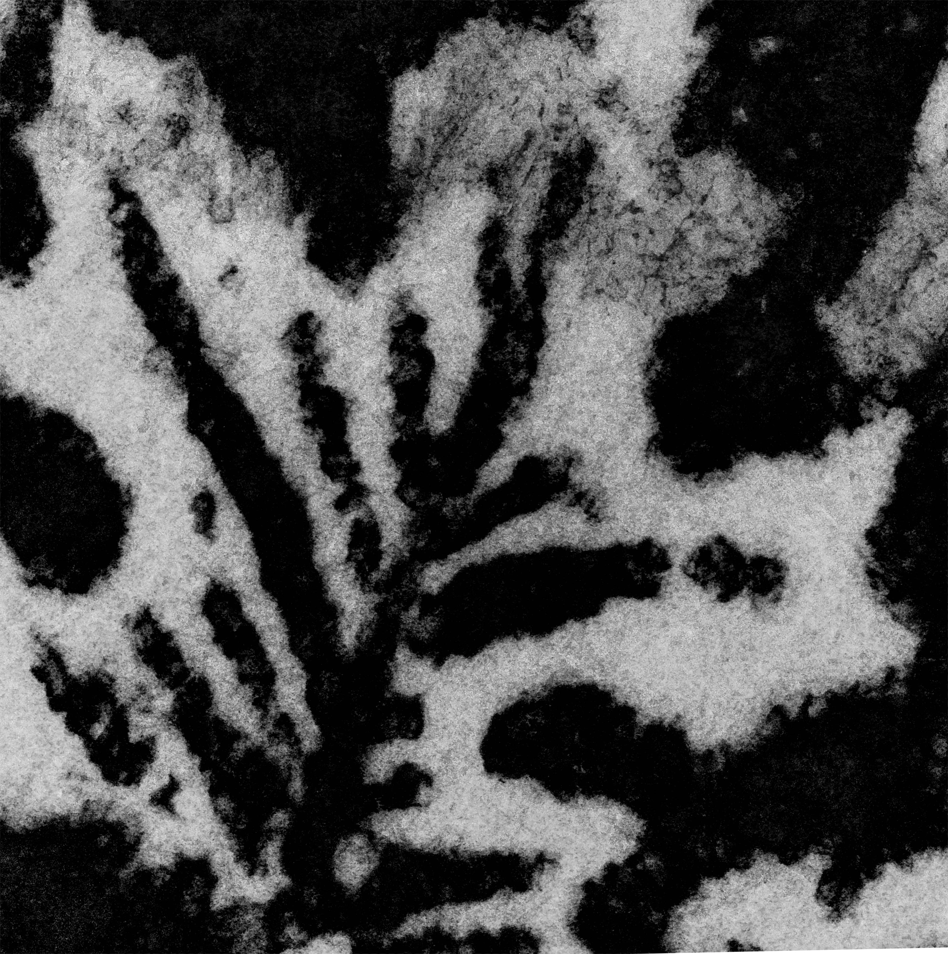 The last branch from the central vein (to the left) is longer and is at a different angle, which indicates retouching.