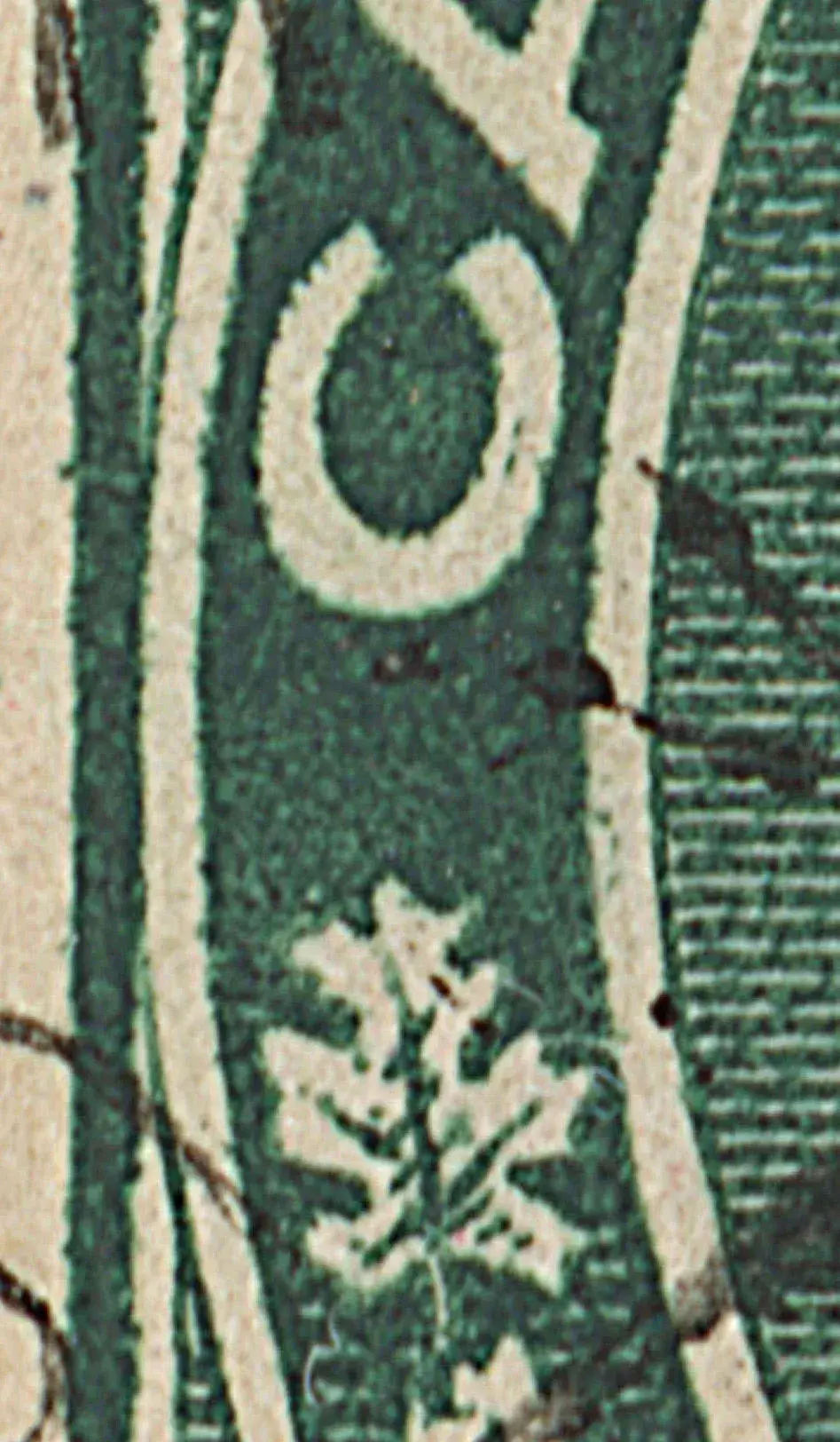 Lines of doubling in the left inner oval at centre and in the right numeral box. Marks in most of the letters of 'ONE CENT' and in 'CA'. There area also less obvious marks in some of the leaves and in the lower in the lower portion of the inner oval.