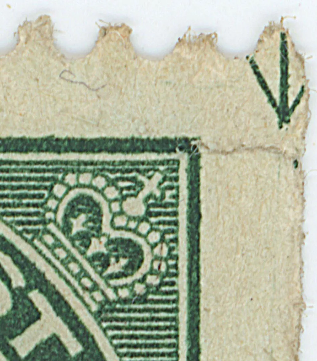 A hand drawn cutting guide arrow in the upper right corner. There are single guide dots at the top, centre and bottom of the right margin.