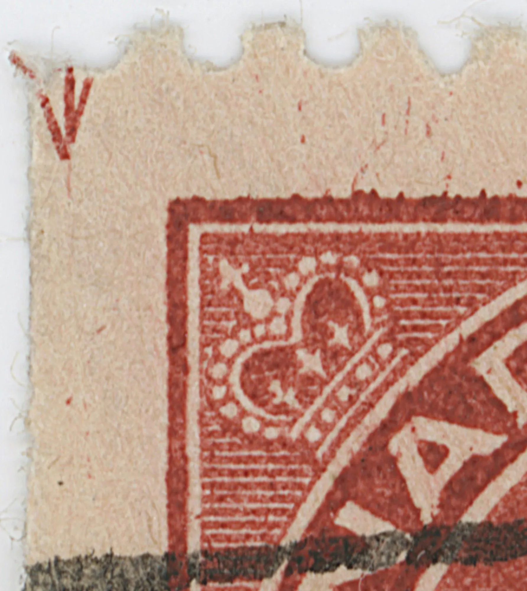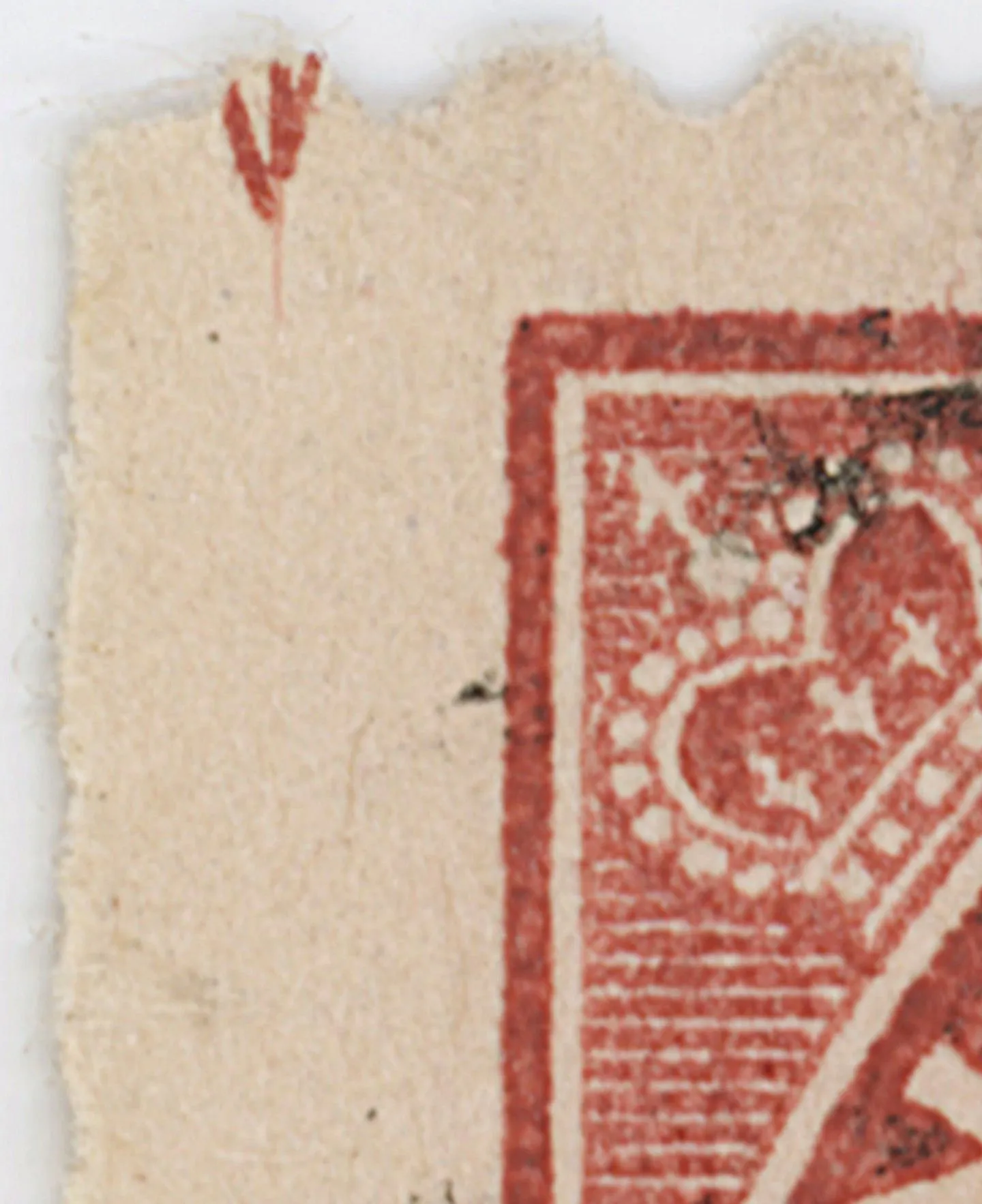 The proof sheet of Plate 66 does not have guide arrows, so most of the Plate 66 identifications have been accomplished by the process of elimination. This position offers us an additional clue. Quoting Leo, "The stamp has a line in the bottom of the G in POSTAGE that is also on the proof."