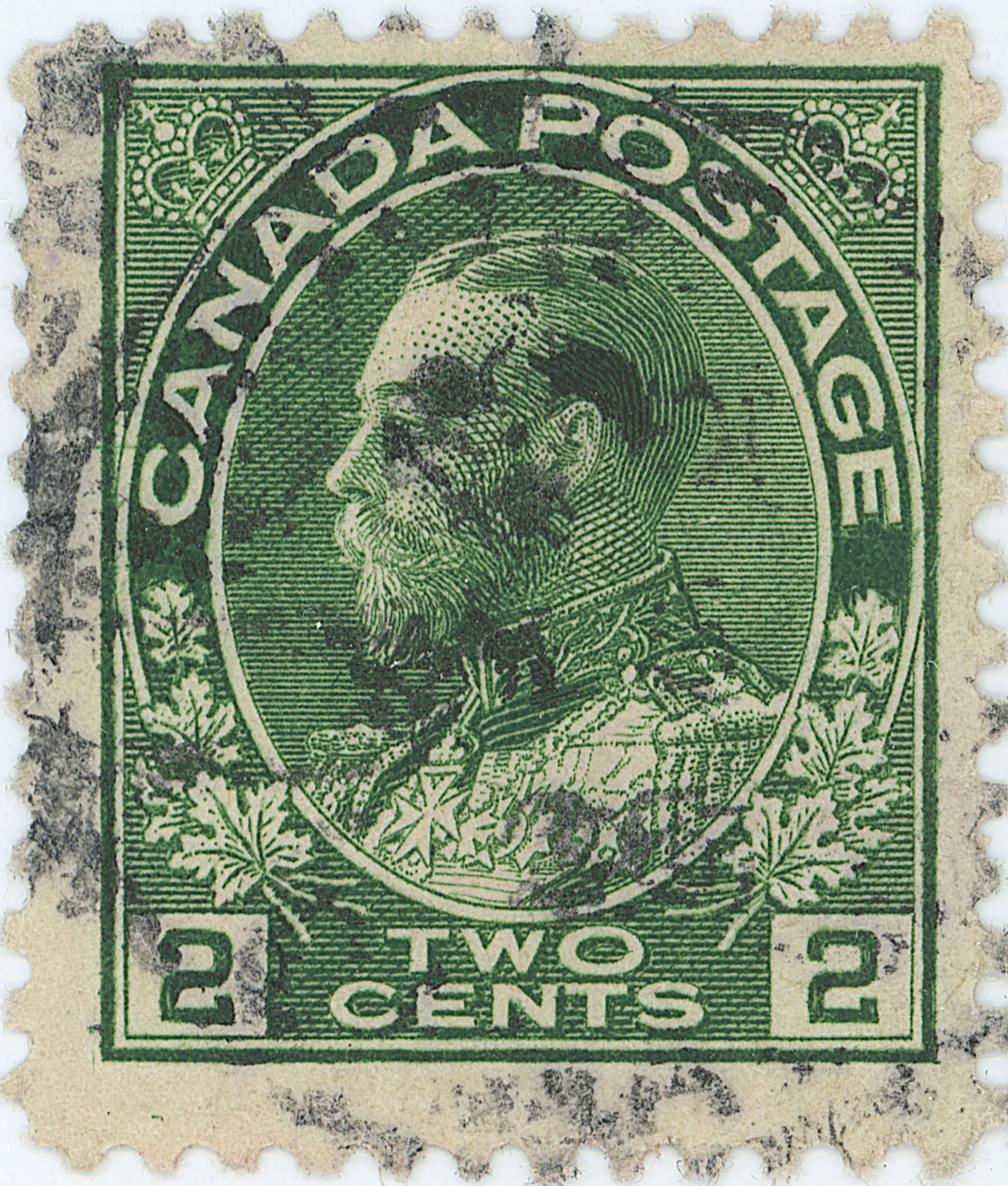 A horizontal line from the left margin, through the 'C' of Canada and into the King's nose.