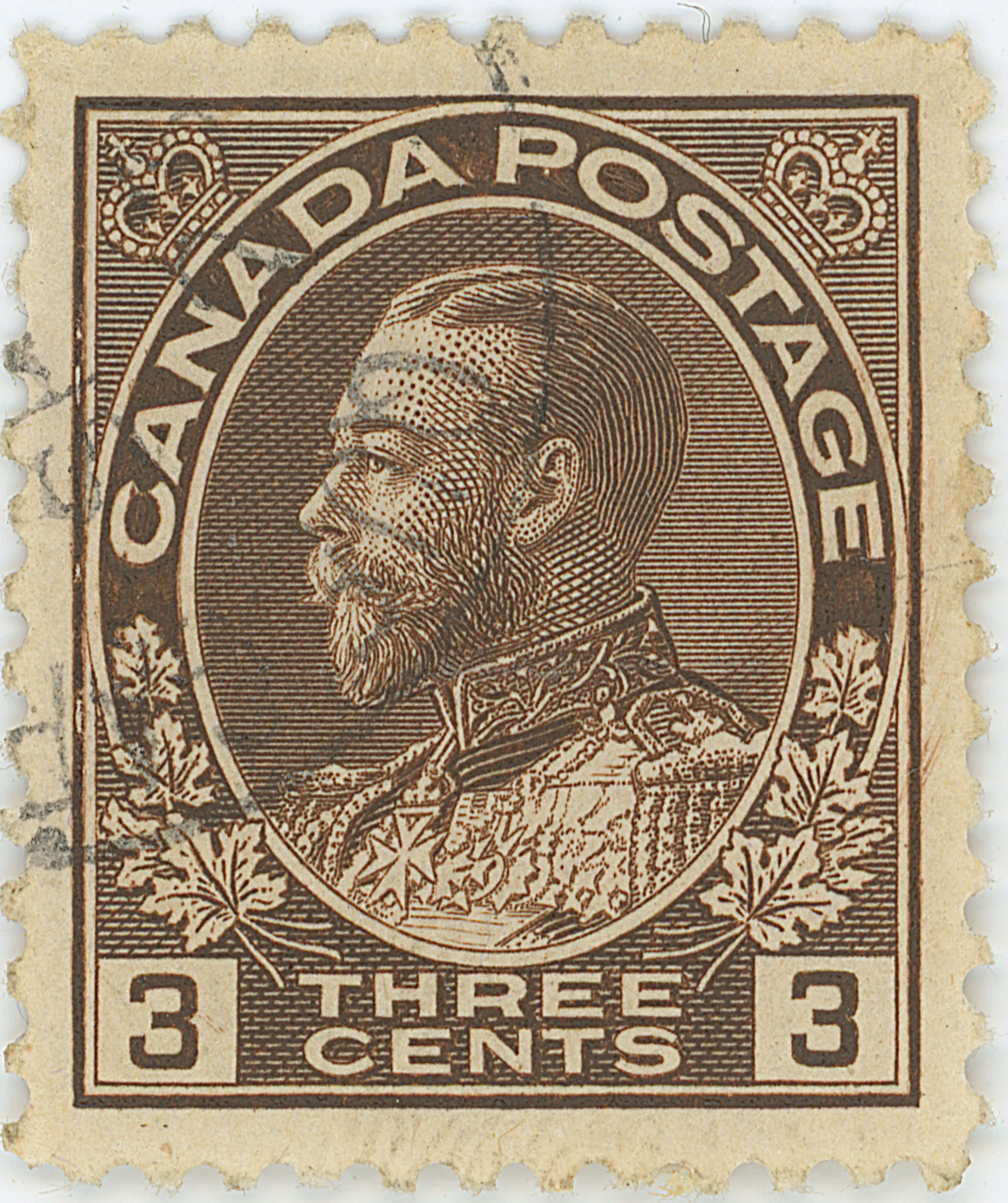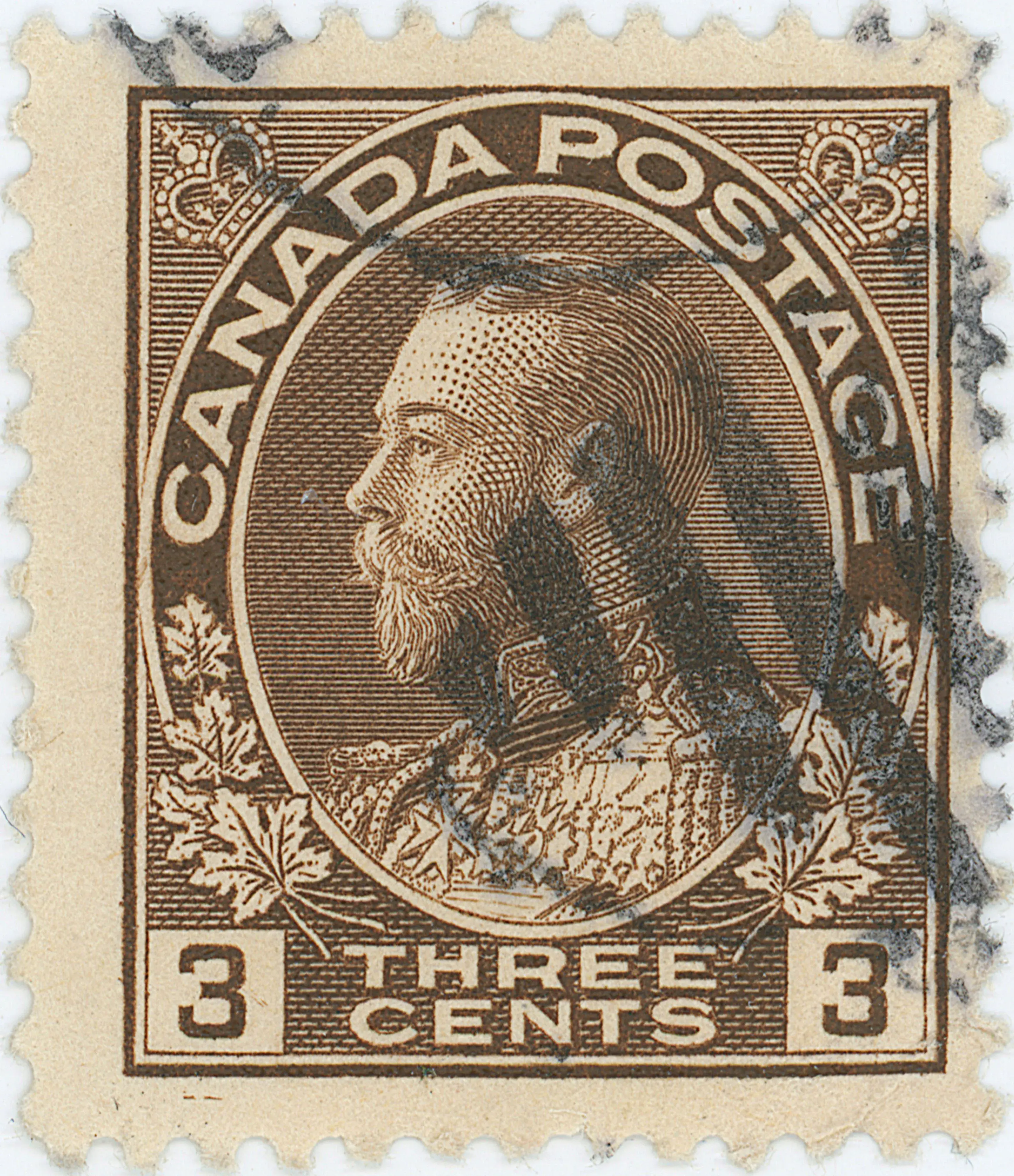 The 3¢ Admiral has a set of mystery markings which are most easily recognized by the two parallel lines which slope down and to the right from the central portion of the left '3'. These marks (and several others) were discussed in Mystery Markings on Admiral Stamps, by Leopold Beaudet and Richard M. Morris, which was published in The Admiral's Log in January 2008 (Vol.XI, No. 1).