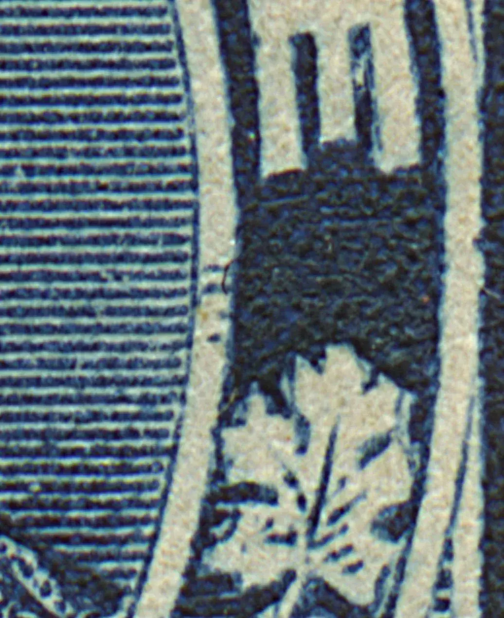A group of short marks in theright centre of the inner oval.