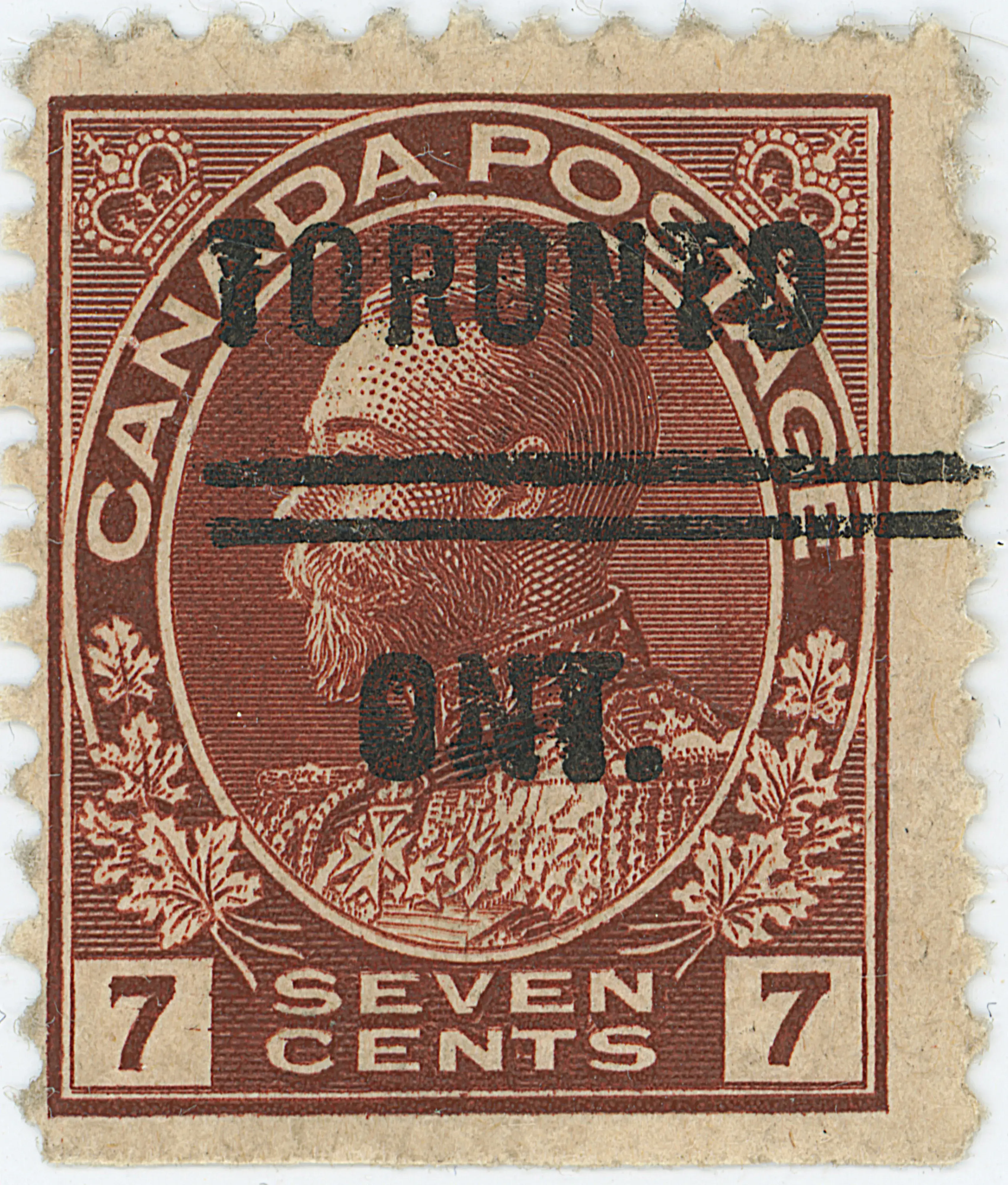 "Doubling of the bottom line, of the top of some letters of SEVEN CENTS and of the bottom lines of the portrait"
