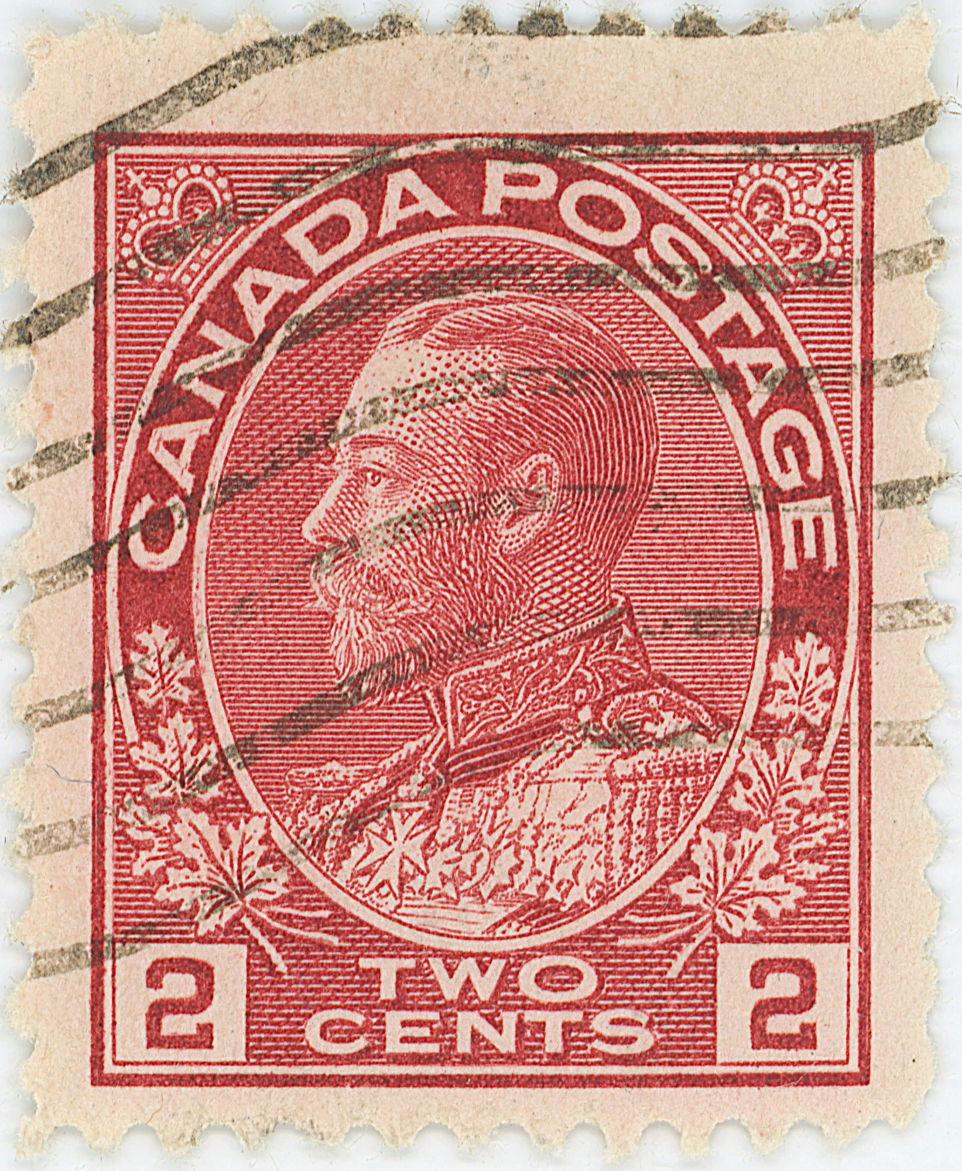 "Marks in CANADA and the white band below, between leaf 4 in the lower left and the N of CANADA (It is difficult to tell whether or not these marks are the result of a re-entry, but a strip which includes these two stamps shows these marks.)"